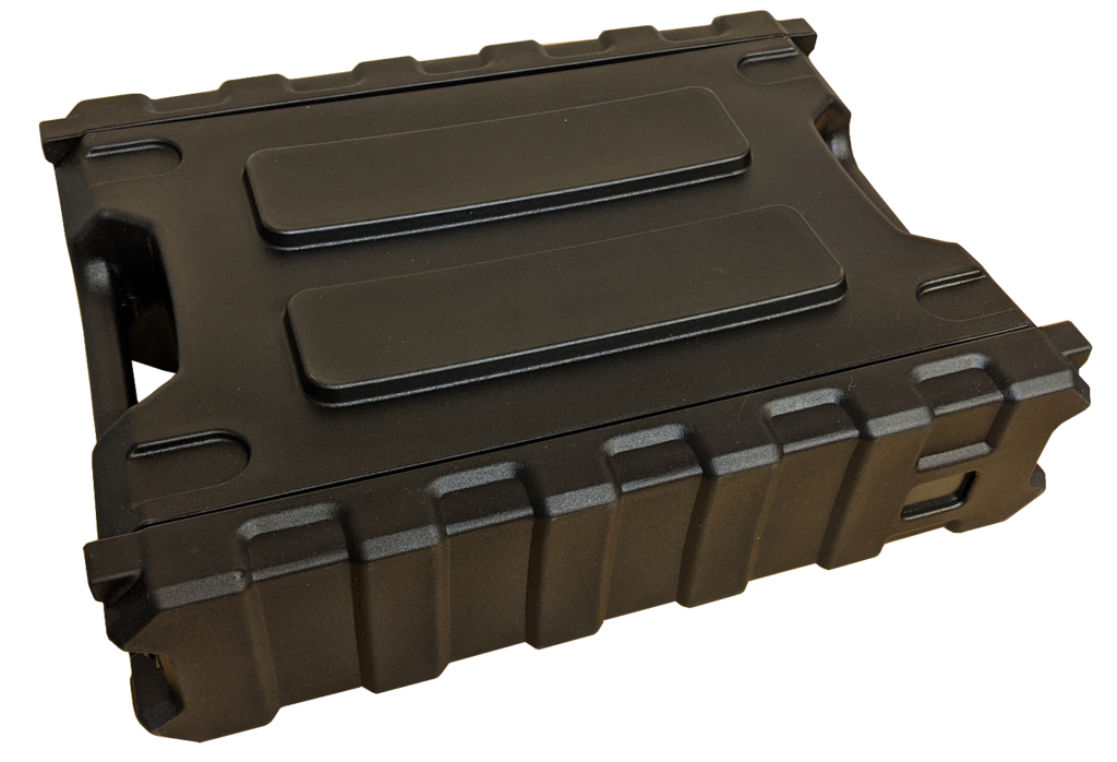Overall size in the rugged mil. casing with both caps closed (depth x width x height): 17’’ x 23’’ x 6’’ (43.2 x 58.4 x 15.2 cm)