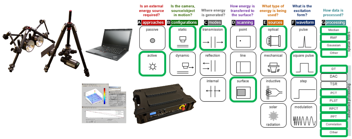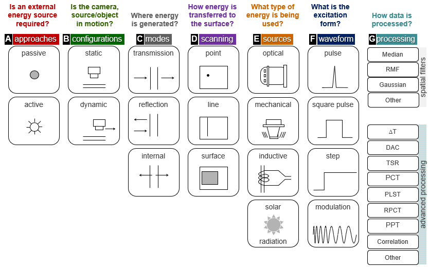 Le « Tableau de classification des configurations IRT » que nous avons conçu ci-dessous vous permet de comprendre facilement les différentes configurations et combinaisons possibles pour une inspection CND par thermographie.